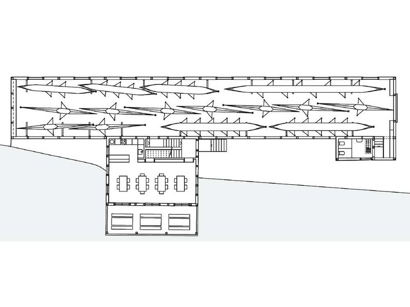 Dank dem Absenken des Bodens der Bootshalle und der Optimierung der Aufbauhöhen der Konstruktion konnte das Dachgeschoss nutzbar gemacht, die geforderten Räume konnten innerhalb des bestehenden Volumens organisiert und störende Anbauten entfernt werden. Bis auf die Fundation aus Stahlbeton und den bestehenden Stahlbau über der Aare ist das Bootshaus als Holzbau konzipiert. Dieser wurde aufgrund der sehr kurzen Bauzeit zwischen September 2016 und April 2017 von Späti Holzbau teilweise vorfabriziert.