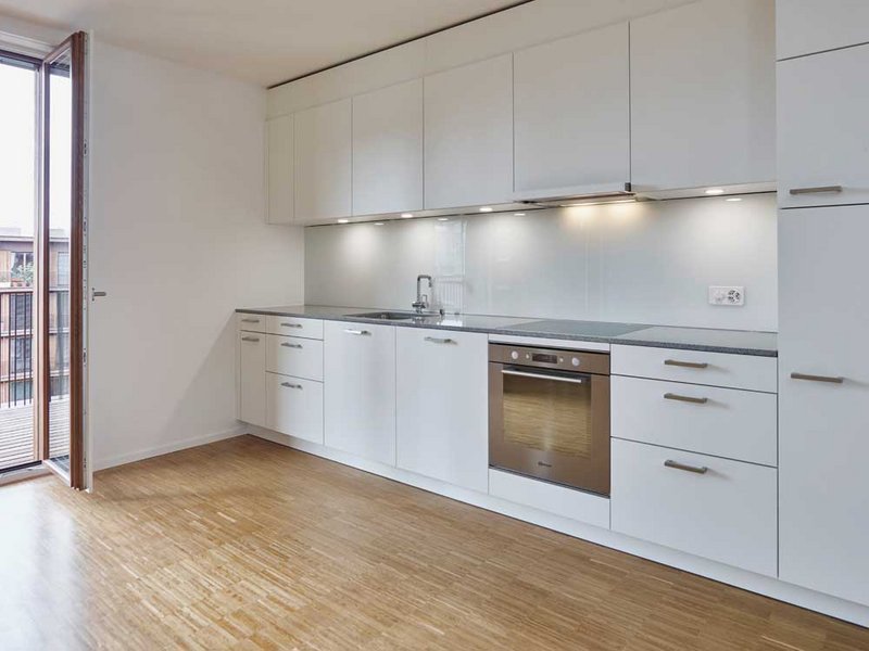 In nur sechs Monaten Montagezeit wuchsen die Langhäuser Stock um Stock. Mit ein Grund dafür ist die Holzsystembauweise. Im modernen Holzsystembau werden individuelle Wand-, Decken- und Bodenelemente in der Werkhalle vorgefertigt. Holzbauer wie die Renggli AG versehen dabei die Boden-, Wand- und Deckenkonstruktionen mit der entsprechenden Wärmedämmung, allen Leitungen sowie den gewünschten Elektroanschlüssen. "Das A und O bei Grossprojekten sind die Logistik und die Terminplanung. Je besser die Abläufe ineinandergreifen, umso reibungsloser ist die Montage. Nimmt man sich bereits in der Planungsphase die Zeit für eine gut organisierte Abstimmung, profitiert das Projekt in seiner Gesamtheit", sagt Matthias Kaufmann von der Renggli AG. Frühzeitig involviert, können Material- und Konstruktionsfachwissen des Holzbauers bereits in den Entwurf einfliessen. Das Freilager Zürich ist das schweizweit grösste bewohnte 2000-Watt-Areal. Die Gebäude sind energieeffizient und entsprechen dem Minergie-Eco-Standard, die Langhäuser dem Minergie-P-Eco-Standard. Das Freilager Zürich ist geprägt vom Gedanken an den nachhaltigen Umgang mit Ressourcen. Ein Augenmerk liegt darauf, das Quartier möglichst autofrei zu gestalten. Die Wärme wird über ein Erdsondenfeld gewonnen, Regenwasser kommt bei den Grünflächen zum Einsatz. In dieses nachhaltige Gesamtkonzept des Quartiers fügen sich die Langhäuser in Holzbauweise nahtlos ein. freilager-zuerich.ch