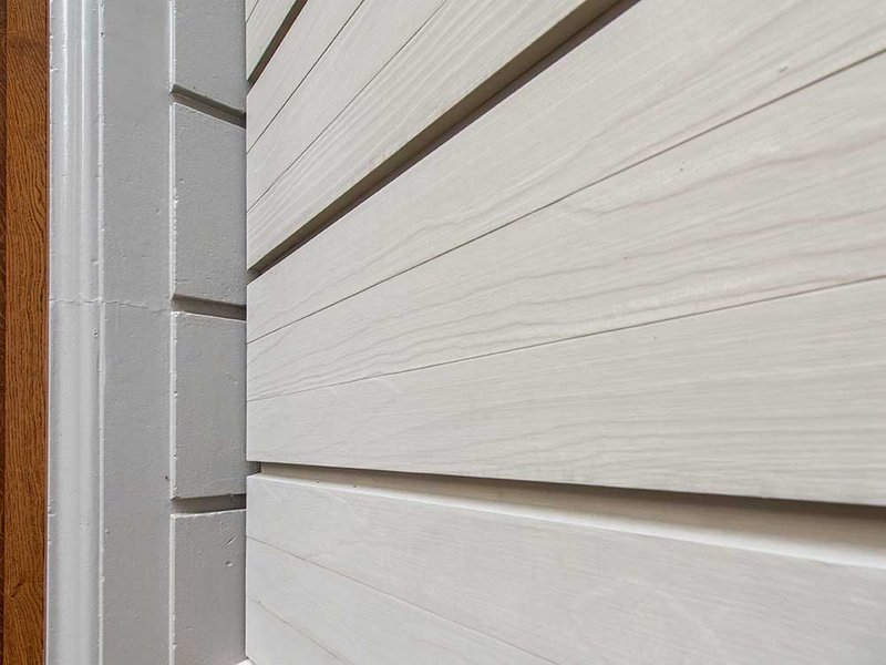 Durch die hohe Masshaltigkeit, das geringe Schwind- und Quellmass und die extreme Dauerhaftigkeit entschieden sich die Holzbauingenieure für Accoya. Es ist ein mit Essig behandeltes Radiata-Kieferholz, das in Neuseeland nachhaltig produziert wird und sehr beständig ist. Das modifizierte Holz ist rein, weist keine Äste und Harzgallen auf und verzieht sich kaum. «Es ist nicht speziell hart, beim Verarbeiten gibt es fast kein Sägemehl, eher Staub», erklärt Schreiber das Material, das sonst im Terrassenbereich eingesetzt wird. Der Brisanz der Materialwahl war man sich bewusst, darum liessen die Architekten schon frühzeitig ein Mock-up der Fassade erstellen, an dem zwei Jahre lang die Details und die Farbbehandlung beobachtet werden konnte. Der Test gelang und so gibt also Holz, behandelt mit Keimfarben, dem neobarocken Stadtcasino eine neue Grösse.