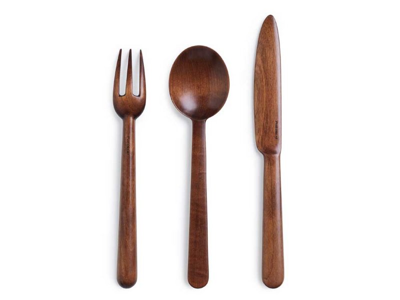 Für die traditionsreiche, französische Manufaktur Puiforcat – 1820 als Messerschmiede gegründet und seit Generationen spezialisiert auf die Silberschmiedekunst beziehungsweise Objekte für die gehobene Tafel (gehört inzwischen zur Hermès-Gruppe) – kreierte der britische Designer Jasper Morrison eine Serie aus Holz. Die Kollektion «Jersey» umfasst dabei ein Besteck mit Gabel, Löffel und Messer sowie ein Servierbesteck und Essstäbchen mit versilberter Ablage. Das Holz ist jeweils lackiert, wobei der seidige Glanz daher rührt, dass der Lack mit der sogenannten Fuki-Urushi-Technik mehrmals sehr dünn mit einem Tuch aufgetragen und in das Holz eingerieben wird. Die für japanisches Kunsthandwerk bekannte Methode ist zeitintensiv und aufwendig. Der hierfür verwendete Lack wird aus dem Harz des ostasiatischen Lackbaums gewonnen. Das schlichte Besteck, gefertigt in Japan, besteht aus Kirschbaum. puiforcat.com, jaspermorrison.com
