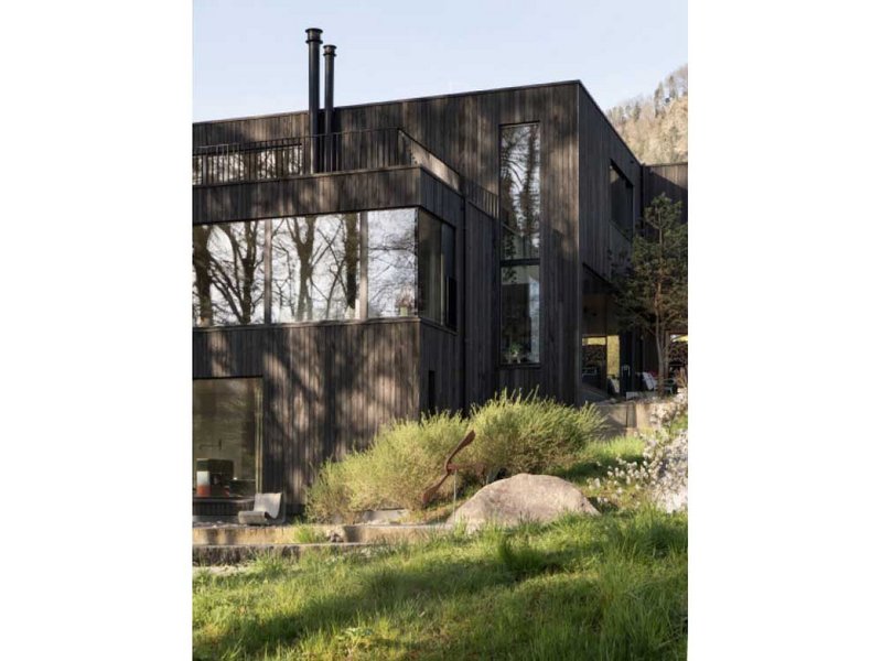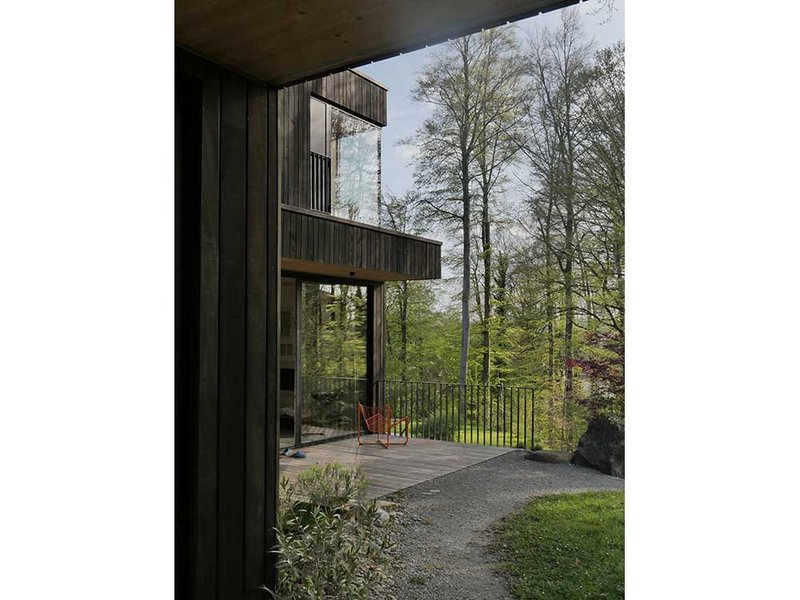 Der Wald hatte denn auch grossen Einfluss auf die Planung des Hauses, das später von der Schaerholzbau AG in Elementbauweise realisiert worden ist. Zum einen schützt der Wald vor Einblicken, weshalb die Fenster entsprechend gross dimensioniert sind. Zum anderen ist er Schattenspender, was einen bauseitigen Sonnenschutz grossteils überflüssig macht. «Wir brauchen fast keine Storen – wir haben den Wald», bringt es David Zangger auf den Punkt. Im Winter hingegen scheint die Sonne durchs laubfreie Geäst und sorgt für ein schönes Licht- und Schattenspiel.