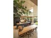 Aufgeteilt ist die Maisonettewohnung der vierköpfigen Familie wie folgt: Vom gemeinsamen Hauseingang – von hier aus werden alle drei Wohnungen erschlossen – betritt man den Vorraum des 240 Quadratmeter grossen Refugiums, das sich als offene Raumstruktur präsentiert. Vom Flur gelangt man in ein Arbeits- beziehungsweise Gästezimmer, an das ein kleines Bad mit WC angegliedert ist. Über eine zweite Tür ist dieses auch direkt vom Flur zugänglich. Ansonsten ist die gesamte Ebene offen gestaltet, wobei sie sich dennoch in Teilbereiche gliedert: Die gemütliche Sofaecke liegt beispielsweise zwei Stufen höher, wodurch sich ein etwas niedriger Raum ergibt. Über der Küche und dem grossen Esstisch reicht hingegen der Luftraum bis zur Galerie hinauf. Zwei sich gegenüberliegende Terrassen erweitern das Wohngeschoss jeweils in den Aussenraum.
