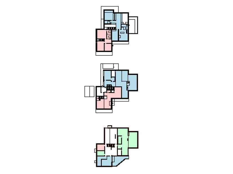 Geschossflächen (pro Wohnung): 240 m2 (Maisonette), 145 m2 (Maisonette), 100 m2