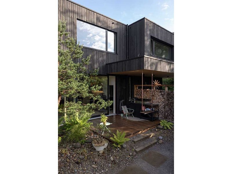 Das Grundstück am Rande von Adliswil (ZH) ist ein Paradies, für Klein und für Gross: Direkt an einem Wald gelegen – einige der Bäume gehören sogar zum Grundstück dazu –, wird dieses am unteren Ende von zwei kleinen Bächen begrenzt. Ein Abenteuerspielplatz, der seinesgleichen sucht. «Einer der beiden Bäche führt selbst im Hochsommer noch Wasser. Das ist natürlich cool für die Kids», erklärt David Zangger. Und verrät nebenbei, dass es auf seinem Grundstück sogar Sommertrüffel gibt. Die Ausbeute im letzten Jahr? Stolze 1,5 Kilo! Zu seinen persönlichen Lieblingsplätzen im Garten zählt übrigens eine Yogaplattform direkt am Hang, auf der er morgens die ersten Sonnenstrahlen geniesst. Gebaut hat er die Plattform selbst – wie so vieles in Haus und Garten. Denn bevor er an der Zürcher Hochschule der Künste Industriedesign studierte, machte er eine Lehre als Zimmermann. In dieser Zeit hatte er seinem Grossvater auch dabei geholfen, den Schopf zu bauen, der heute noch existiert und gelegentlich das Nachtlager der Kinder ist.