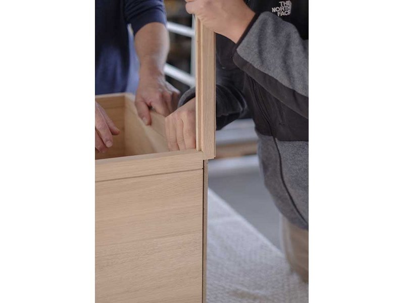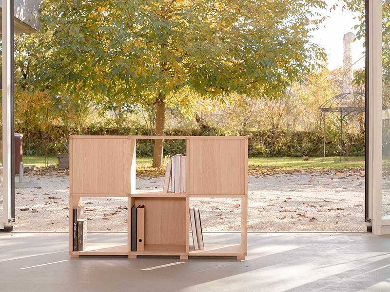 Bei diesem jungen Architekturbüro aus Wohlen bei Bern ist Name Programm: Naturundraum – das Büro für Architektur, Baubiologie und Permakultur. Die drei Gründer haben sich dem naturnahen und nachhaltigen Bauen verschrieben. Ihre Philosophie macht vor den Einrichtungsgegenständen nicht Halt, wie M403 zeigt: ein modulares, langlebiges Regalsystem, das je nach Lebenssituation konstant erweitert oder verkleinert werden kann. Der Leitgedanke war, ein System zu entwickeln, das ausschliesslich den Werkstoff Holz beinhaltet und gemäss der traditionellen Schreinerkultur ohne Schrauben und Nägel zusammengebaut wird. Das einfache und smarte Design erschliesst sich durch die einheitlich grossen Platten für Böden, Wände und Rücken. Die Verbindungsknoten sind auf drei Typen reduziert und simple Holzplättchen dienen als Füsse. M403 wird ausschliesslich auf Bestellung hergestellt. Zur Wahl stehen die Holzarten Eiche, Esche, Nussbaum, Kirsche und Birne aus regionaler Herkunft. Auch in Sachen sozialer Nachhaltigkeit kann Naturundraum punkten. Die Möbelstücke fertigt die Schreinerei der Stiftung Terra Vecchia, die Menschen den Wiedereinstieg in die Arbeitswelt und die Gesellschaft ermöglicht.