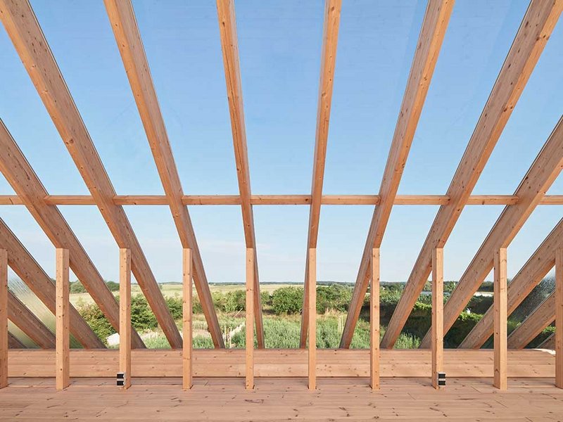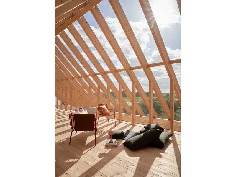 Eigentlich schade, dass man Dachstühle normalerweise von aussen nicht sieht. Bei diesem Ferienhaus in der norddeutschen Uckermark ist das anders.