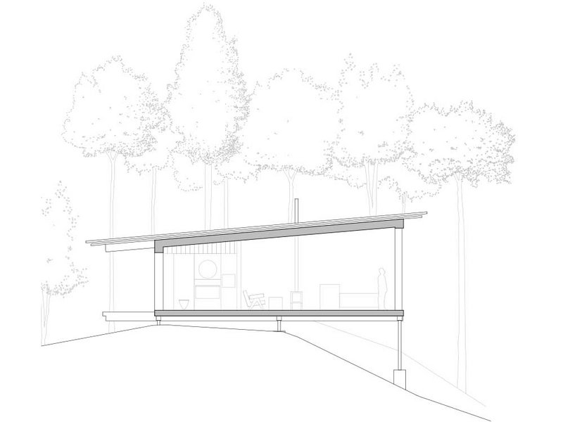 Um beim Bau der drei neuen Gebäude eine Versiegelung des Waldbodens zu vermeiden, wurden diese schwebend konstruiert. Jedes Haus steht auf sechs filigranen Stahlstützen, die zusammen mit entsprechenden Trägern einen Stahlrahmen bilden. Darauf sitzt die Holzkonstruktion mit Boden, Decke, Wänden und Dach. Abhängig von der Topografie und der Beschaffenheit des Waldbodens wurden die Stahlstützen entweder mit Punktfundamenten im Erdreich verankert oder direkt in den Felsen geschraubt.